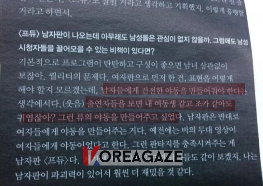 اون در ادامه توضیح داد که سری برنامههای “PRODUCE 101” رو با اعضای گروه دخترانه شروع کرده چون میخواسته “پورن سالم برای مردها” بسازه.