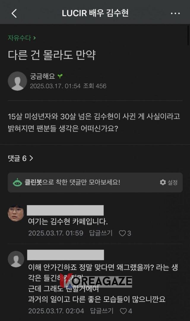 در بحبوحه افشاگریهای پیدرپی و جنجالی علیه کیم سو هیون (Kim Soo Hyun) و رابطهاش با کیم سه رون (Kim Sae Ron)، نظرات اخیر در فنکافه کیم سو هیون توجه زیادی را در فضای آنلاین به خود جلب کرده است.