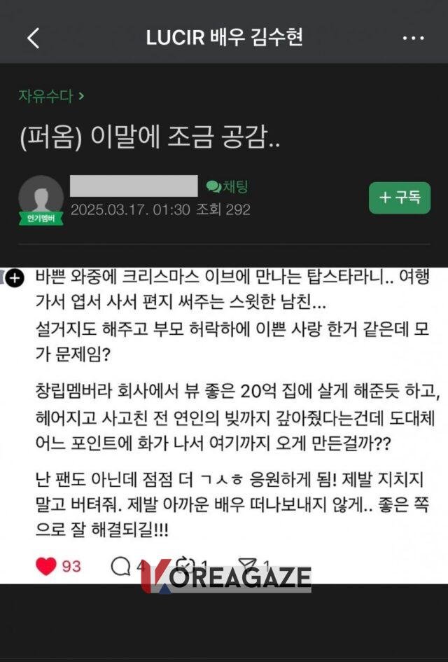 پستی آنلاین که نزدیک به 50,000 بازدید داشته، دیدگاههای طرفداران کیم سو هیون را در مورد جنجال اخیر آشکار کرده است.