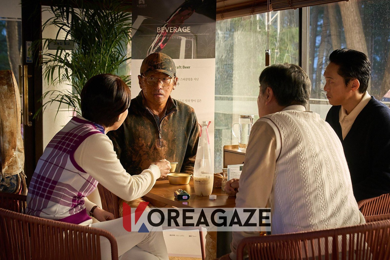 تصویر دیگری چانگ ووک را در کنار گزارشگر پارک (Park) (لی دونگ هوی Lee Dong Hwi) و گلفباز حرفهای جین (Jin) (کانگ هه ریم Kang Hae Rim) نشان میدهد که در حال تماشای یک توپ گلف در وسط هوا هستند و ظاهراً به یک لحظه مهم واکنش نشان میدهند. این تصویر اتفاقات غیرمنتظره و رویاروییهای پرتنش در زمین گلف، محل اصلی فیلم، را به نمایش میگذارد. در همین حال، یک عکس خیرهکننده از رئیس چوی که با یک چوب گلف ژست گرفته است، گویی در حال رقصیدن است، دسیسه و کنجکاوی را برمیانگیزد.
