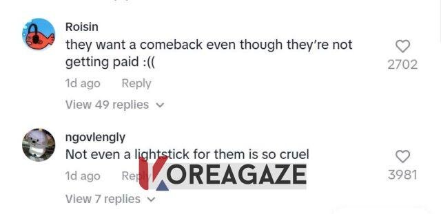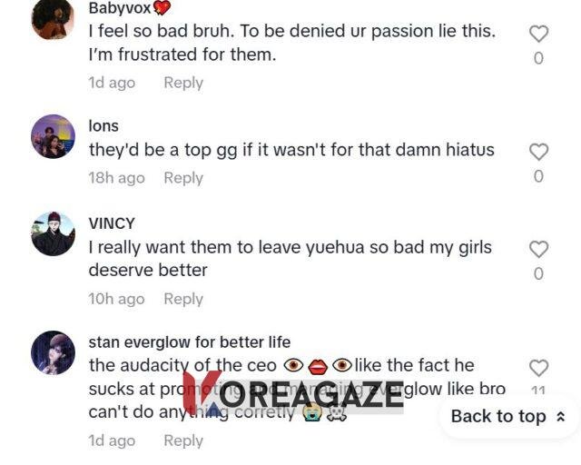 کاربران اینترنتی به دلایل زیادی خشمگین بودند، به ویژه اینکه تمایل اعضا به اجرا توسط کمپانی مانع میشد، و بسیاری میگفتند که میخواهند اعضا هر چه زودتر کمپانی را ترک کنند.