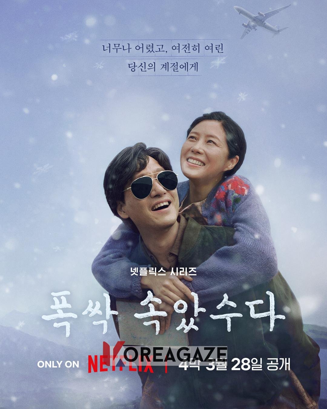 پوستر زمستانیِ تازهمنتشرشده، لحظهای لطیف رو زیر آسمون برفی ججو به تصویر میکشه، جایی که گوان سیک (با بازی پارک هه جون (Park Hae Joon)) رو میبینیم که ئه سون (با بازی مون سو ری (Moon So Ri)) رو کول کرده. ئه سون، در حالی که از این کولسواری راضی به نظر میرسه، لبخند میزنه و گوان سیک هم تمام قد ازش حمایت میکنه. این تصویر، پایانی گرم و صمیمانه رو برای فصل آخر زندگی تداعی میکنه و قلب بینندهها رو لمس میکنه.
