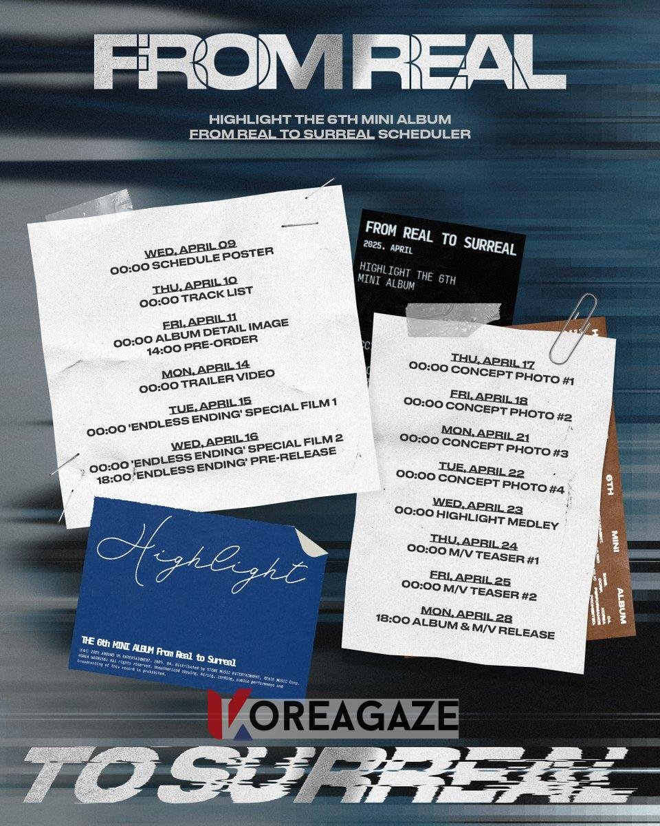 در تاریخ 9 آوریل، نیمهشب به وقت کره جنوبی (KST)، گروه HIGHLIGHT از برنامه زمانی دقیق برای بازگشت خودشون با ششمین مینی آلبومشون به اسم “From Real to Surreal” رونمایی کردند.