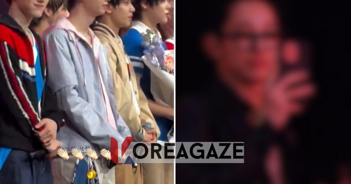 همینطور که او صحنه رو ترک میکرد ، کاربران متوجه شدند که او در حال فیلم گرفتن از صحبت های اعضا بود.