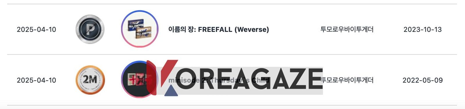 گروه TXT در این ماه دو گواهینامه جداگانه دریافت کرد: مینی آلبوم 2022 آنها به نام “minisode 2: Thursday’s Child” گواهینامه دابل میلیون (double million) را برای فروش بیش از 2 میلیون نسخه دریافت کرد، در حالی که نسخه Weverse آلبوم 2023 آنها به نام “The Name Chapter: FREEFALL” پس از فروش بیش از 250,000 نسخه، گواهینامه پلاتینیوم (platinum) دریافت کرد.