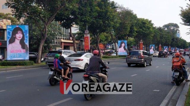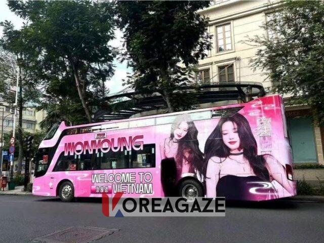 تبلیغات اتوبوسی هم برای خوشآمدگویی به وونیونگ در ویتنام نصب شده بود.