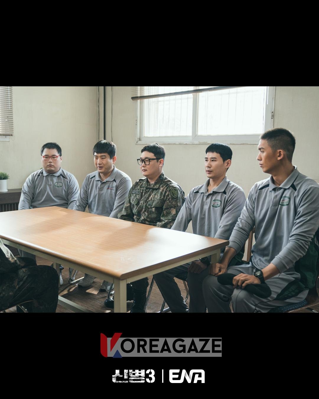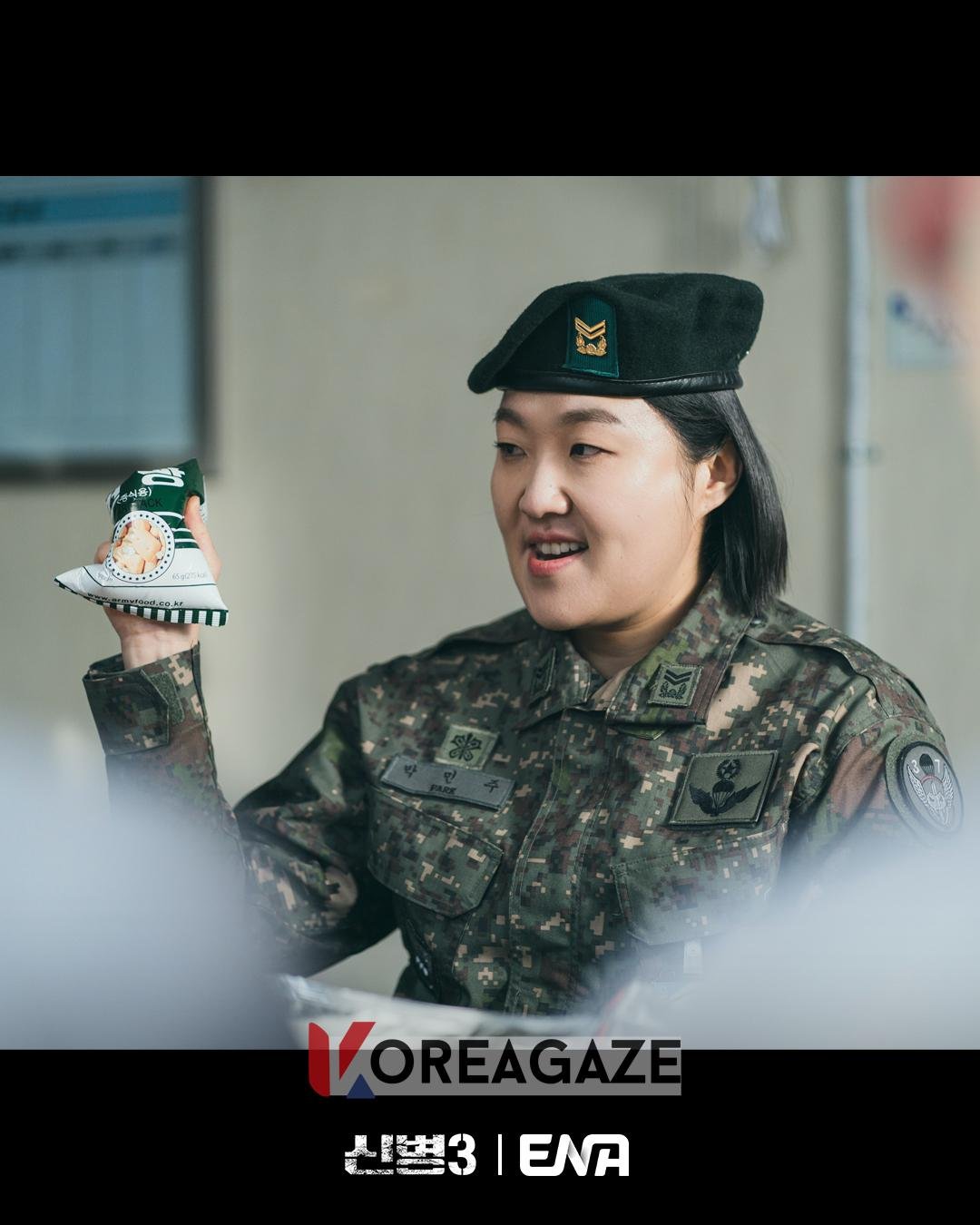 تصاویر جدید منتشر شده، دو صحنه متضاد از ملاقاتهای غیرمنتظره در خوابگاه 1 و 3 را نشان میدهد. در خوابگاه 1، مهمان ناخوانده کسی نیست جز خواهر بزرگتر پارک مین سوک، پارک مین جو (Park Min Joo). به نظر میرسد پارک مین سوک از این ملاقات ناگهانی ناراحت است. صحنهای که او و چوی ایل گو (Choi Il Gu) پس از خرد کردن یک بیسکویت نظامی توسط پارک مین جو با یک دست، در جای خود میخکوب میشوند، به جذابیت طنزآمیز ماجرا میافزاید. اما دلیل این دیدار ناگهانی پارک مین جو از برادر کوچکترش چیست؟