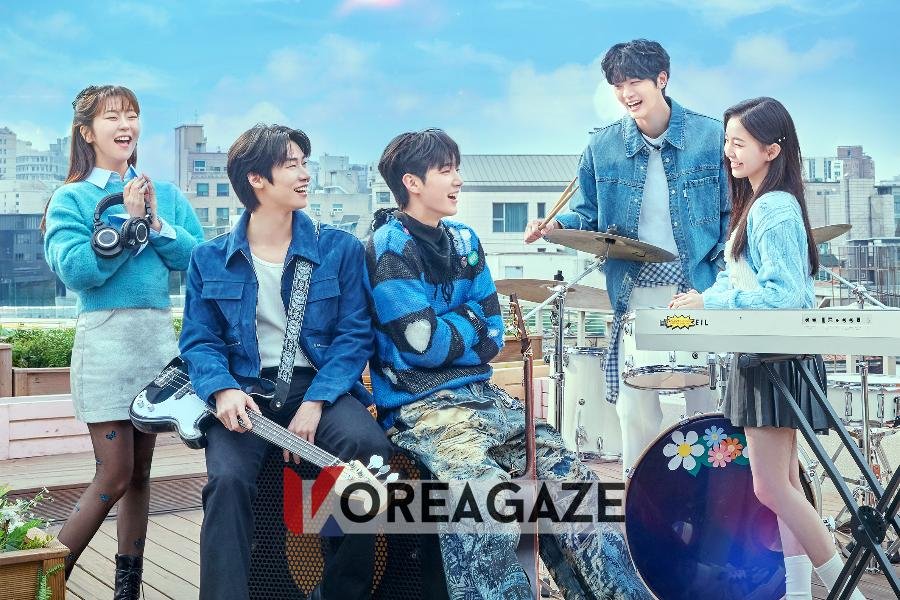 این پنج بازیگر در پسزمینهای روی پشتبام، با ژستهای رسا و سازهای موسیقی، شخصیتهای خود را به تصویر میکشند و تصویری زنده و آفتابی ایجاد میکنند که منعکسکننده مضامین جوانی و رشد سریال است. ها یو جون، که نقش خواننده اصلی گروه، سا گه را بازی میکند، به طور اتفاقی به یک آمپلیفایر تکیه داده و حس و حالی آرام و آسوده را القا میکند. پارک جی هو، در نقش کیم بم، نوازنده کیبورد گروه، با لبخندی شاد و درخشان، قاب تصویر را روشن میکند.