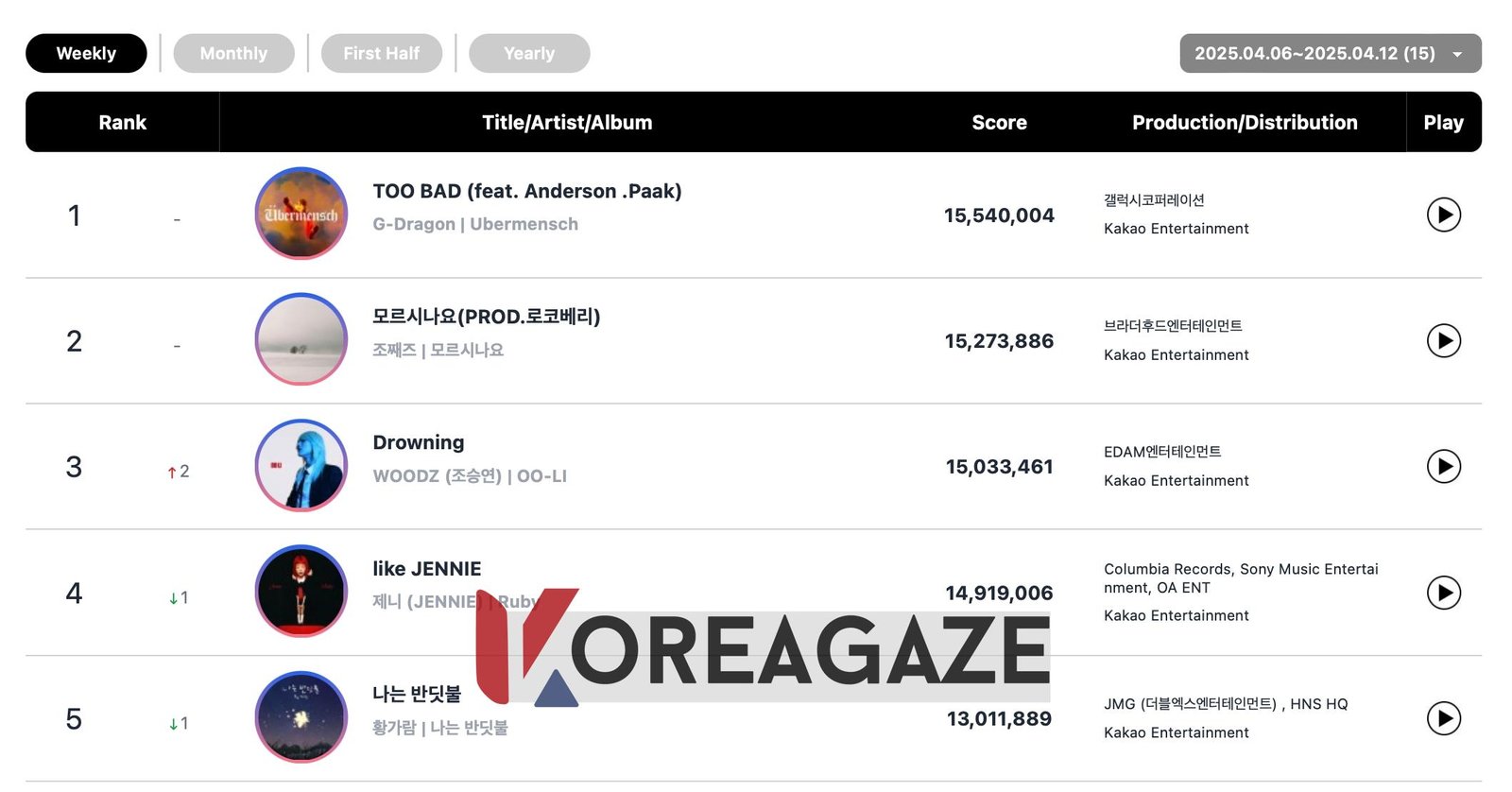 **چارت Circle (که قبلاً با نام Gaon Chart شناخته میشد) رتبهبندیهای چارت خود را برای هفته 6 تا 12 آوریل منتشر کرد!**
