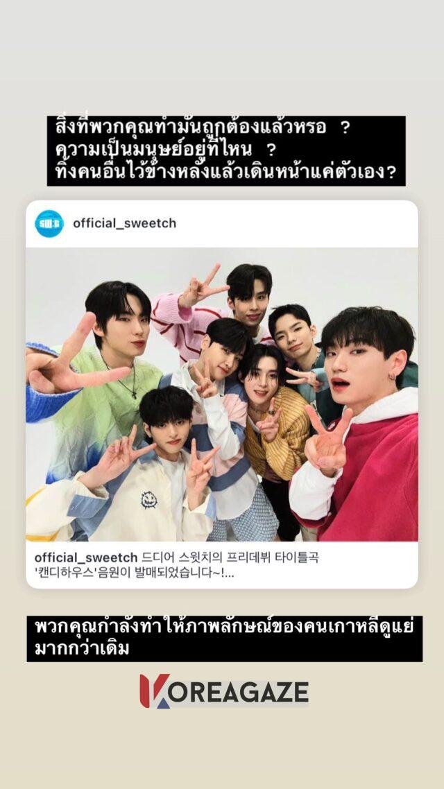 در پاسخ، گروه SWEET:CH بیانیهای را در حساب X خود به اشتراک گذاشت و این وضعیت را یک سوءتفاهم خواند. آژانس این گروه همچنین ادعا کرد که این یک حادثه ناشی از شکاف زبانی بین اعضا بوده است.