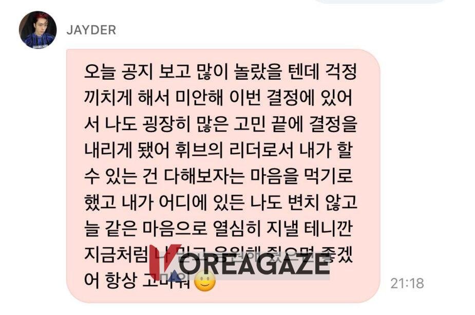 بر ابهامات افزوده شده، خود جیدر (Jayder) اندکی پس از انتشار خبر، پیامی مبهم را از طریق یک برنامه ارتباطی با طرفداران به اشتراک گذاشت.