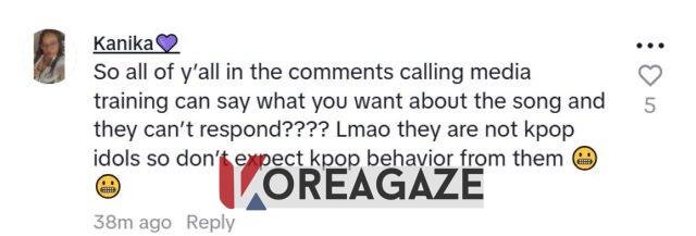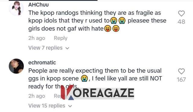 کاربران اینترنتی از لارا و مانون دفاع کردند و توضیح دادند که اگرچه این حرف به صورت شوخی و از روی خوشحالی گفته شده، اما آنها اجازه دارند به کار خود افتخار کنند و همچنین محدودیتهای استانداردی که آیدلهای کیپاپ (K-Pop) در مورد حرفهایی که میتوانند بزنند دارند، ندارند.