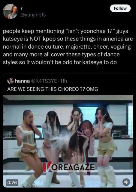 عدهای دیگه هم استدلال میکنن که گروه KATSEYE از منابع کیپاپ استفاده میکنه، در برنامههای موسیقی و برنامههای متنوع کیپاپ تبلیغ میکنه، با هنرمندان کیپاپ چالش انجام میده و غیره، و بنابراین باید مشمول همون استانداردهایی باشه که برای گروههای کیپاپ وجود داره.