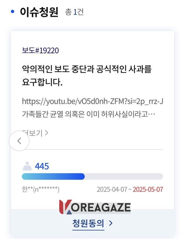 ماه گذشته، در وبسایت KBS دادخواستی با عنوان “ما خواستار پایان دادن به گزارشهای مخرب و عذرخواهی رسمی هستیم” ثبت شد.