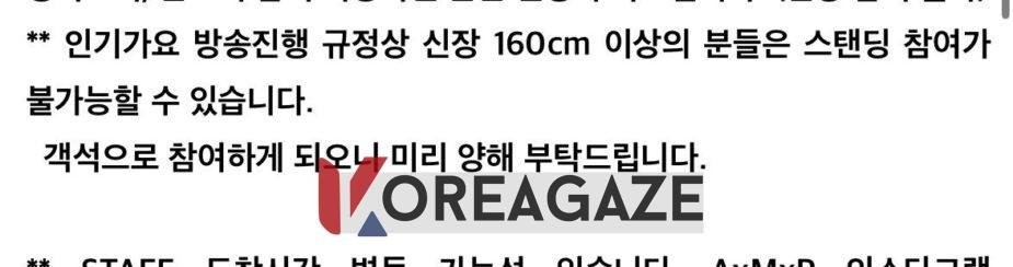 طبق قوانین پخش اینکیگایو (Inkigayo)، افرادی که قدشون بیشتر از 160 سانتیمتره، ممکنه اجازه شرکت در قسمت ایستاده رو نداشته باشن.