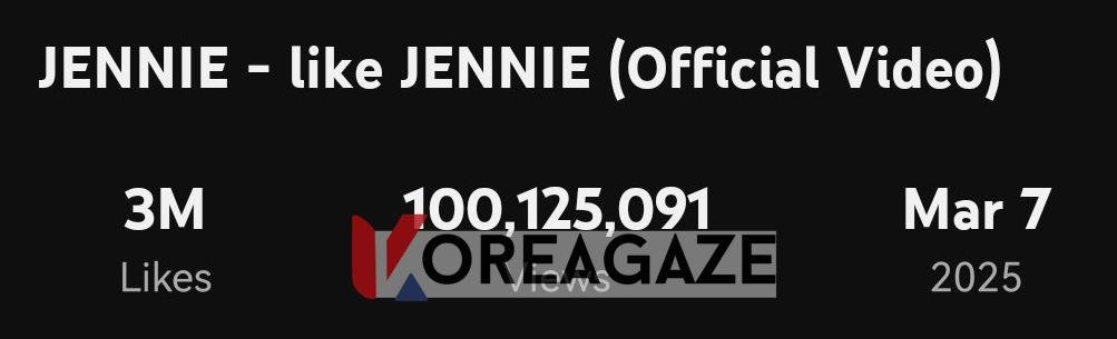 در حدود ساعت 3:50 بامداد 9 می به وقت کره، موزیک ویدیوی جنی برای جدیدترین آهنگ انفرادیاش “like JENNIE” از مرز 100 میلیون بازدید در یوتیوب عبور کرد و به اولین موزیک ویدیویی تبدیل شد که توسط یک هنرمند کیپاپ (K-pop) در سال 2025 به این موفقیت دست مییابد.