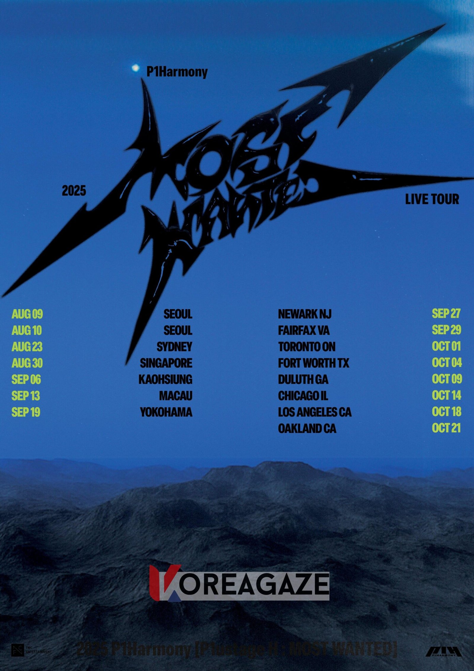 در 19 می، گروه P1Harmony تاریخها و مکانهای برگزاری تور زنده 2025 خود با نام “P1ustage H: MOST WANTED” را اعلام کرد.