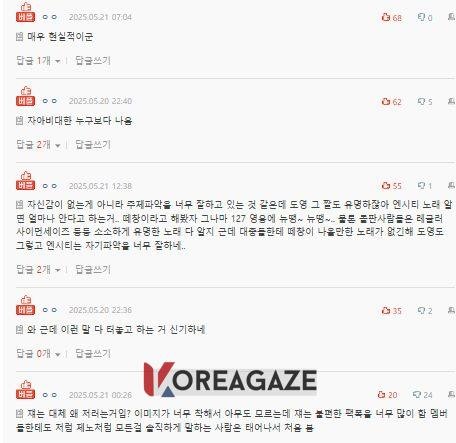اظهارات کوتاه اما پرمغز او به سرعت وایرال شد، به ویژه در انجمنهای کرهای مانند Pann. در حالی که برخی از طرفداران صداقت او را طراوتبخش و قابلدرک میدانستند، برخی دیگر نگرانی خود را در مورد آنچه که به عنوان کمبود اعتماد به نفس تلقی میکردند، ابراز کردند.