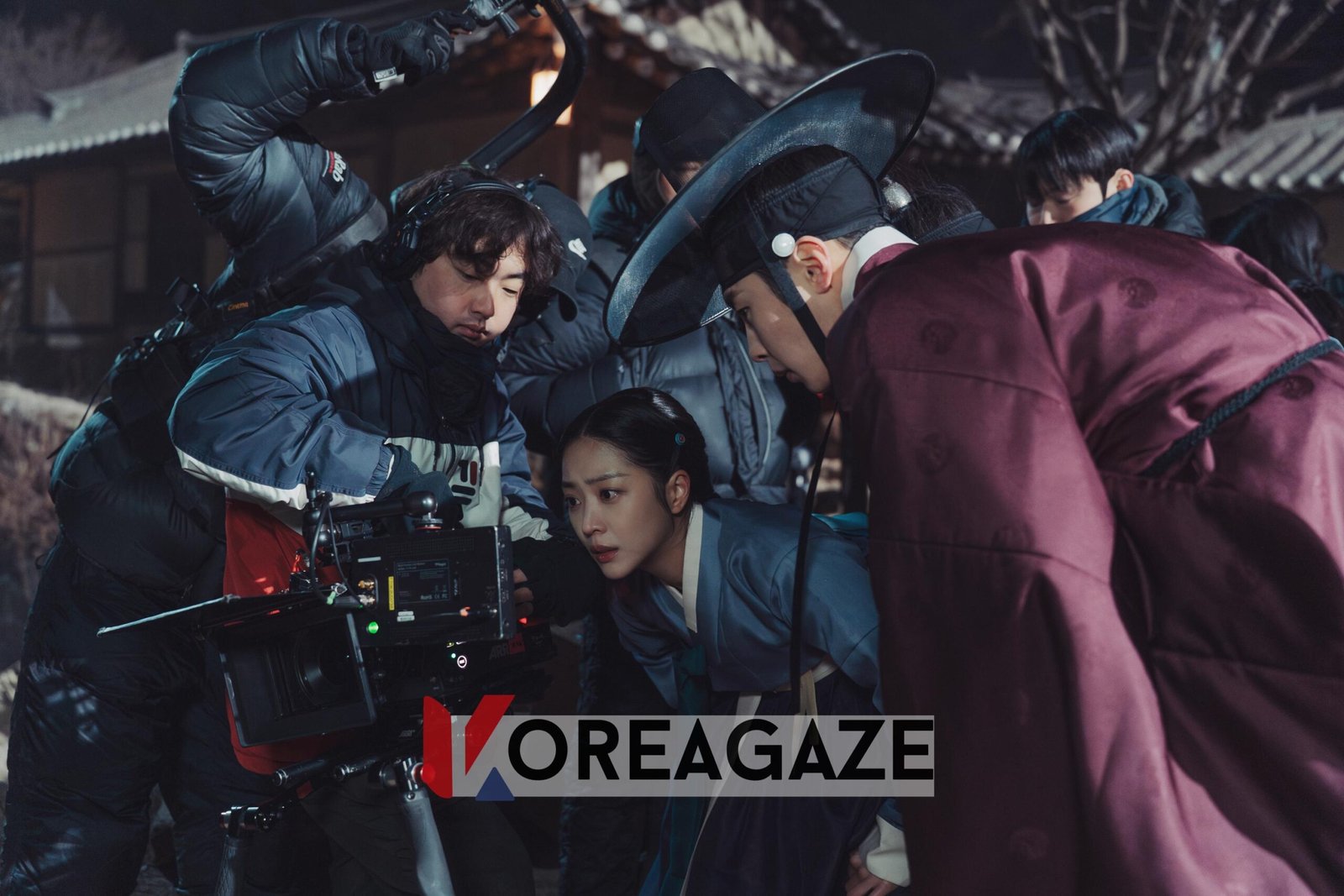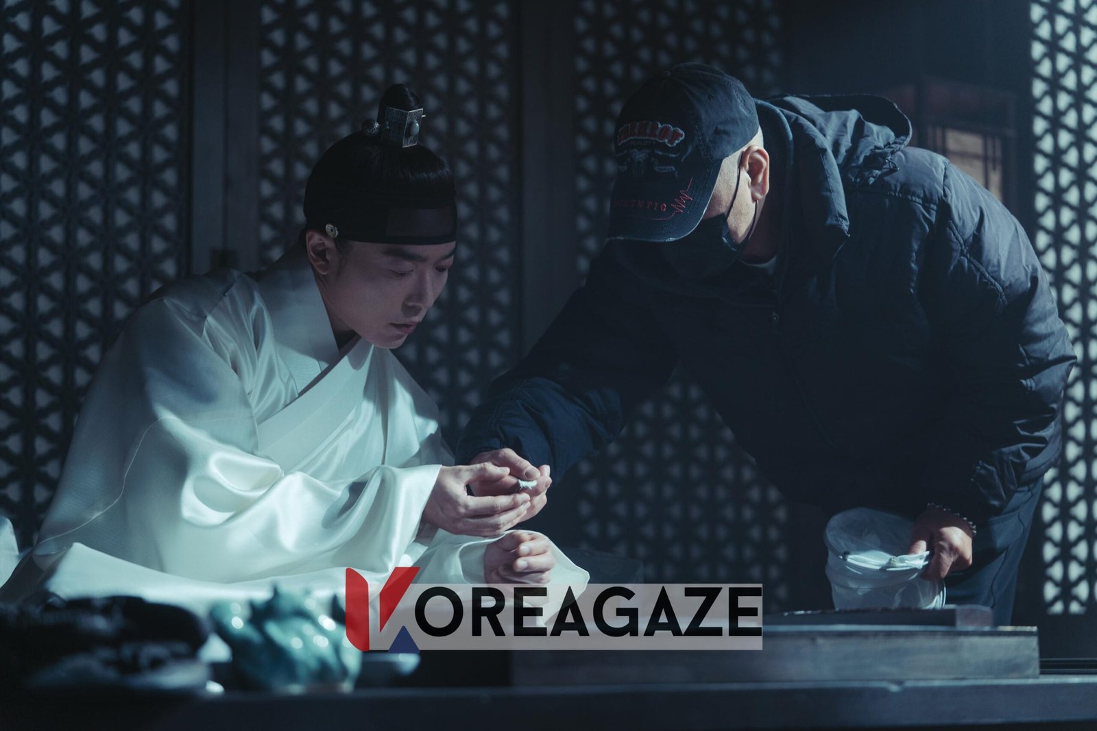 حضور کاریزماتیک لی جه ووک سوار بر اسب و حالت متمرکز جو بو آه هنگام بررسی بازیاش، نشاندهنده غرق شدن عمیق هر دو بازیگر در ایفای نقش هونگ رانگ و جه یی است.