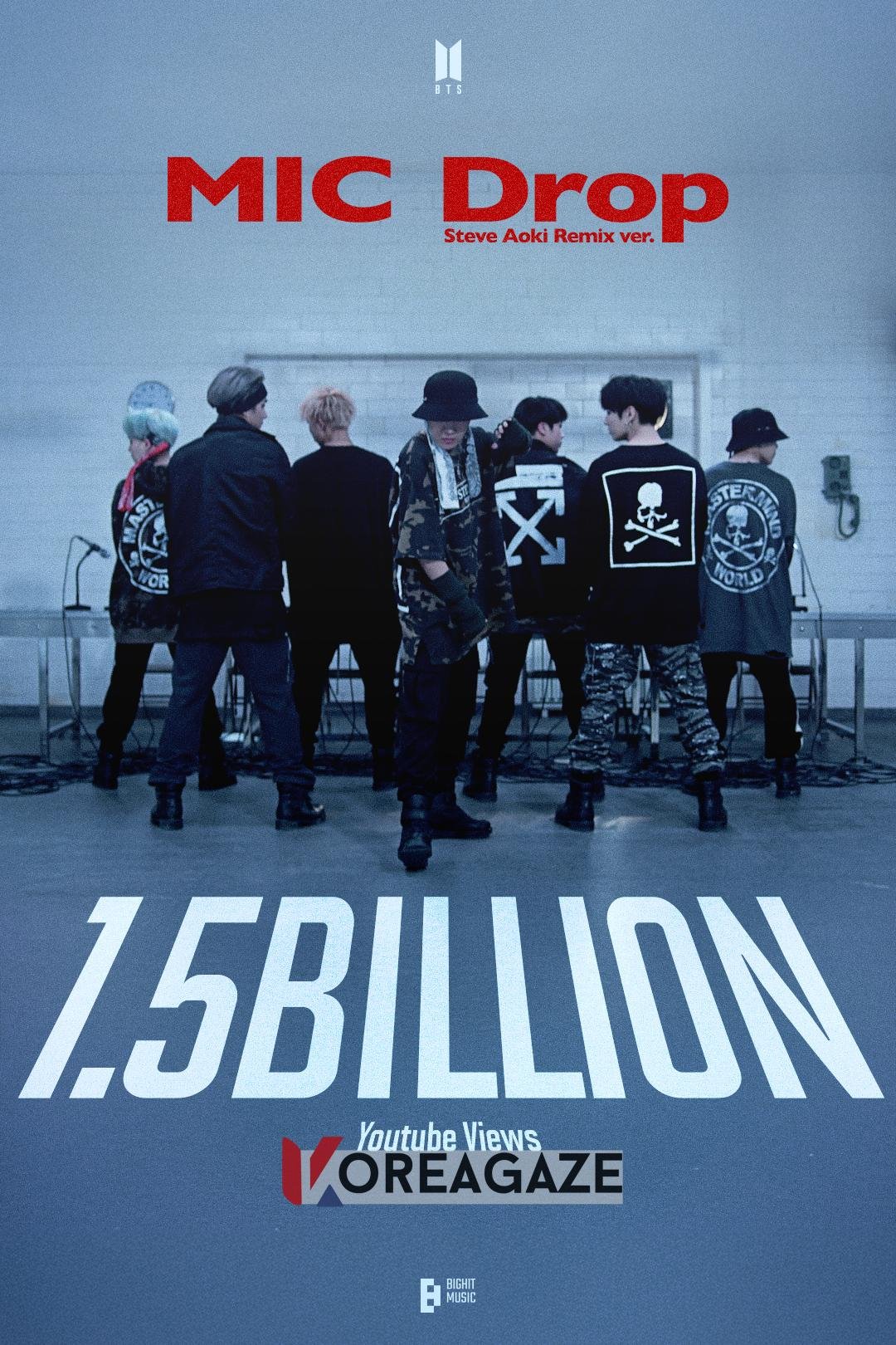 در ۲۳ می، ساعت ۵:۰۷ بعد از ظهر به وقت کره جنوبی، موزیک ویدیوی «MIC Drop (Steve Aoki Remix)» از بی تی اس (BTS) از مرز ۱.۵ میلیارد بازدید در یوتیوب عبور کرد و به چهارمین موزیک ویدیوی این گروه تبدیل شد که بعد از «Boy With Luv»، «Dynamite» و «DNA» به این موفقیت دست پیدا می‌کنه.