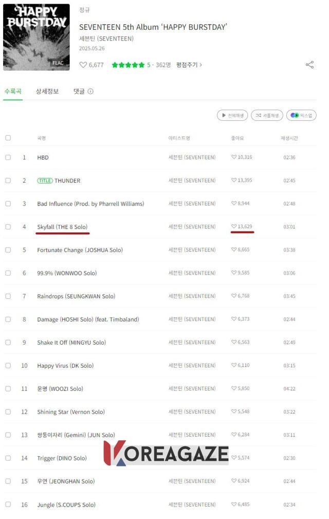 این آلبوم که امروز، ۲۶ مِی (۶ خرداد) منتشر شد، شامل ۱۶ آهنگه: آهنگ اصلی “THUNDER” (تاندر)، دو آهنگ فرعی و آهنگهای تکی برای هر کدوم از ۱۳ عضو گروه. در حالی که طرفدارها دارن خلاقیت و تلاش گروه رو جشن میگیرن، یه بحث و جدل رو به رشد دربارهی قابلیت “لایک” در پلتفرم Melon (مِلون) بین کاربران کرهای اینترنت بالا گرفته.
