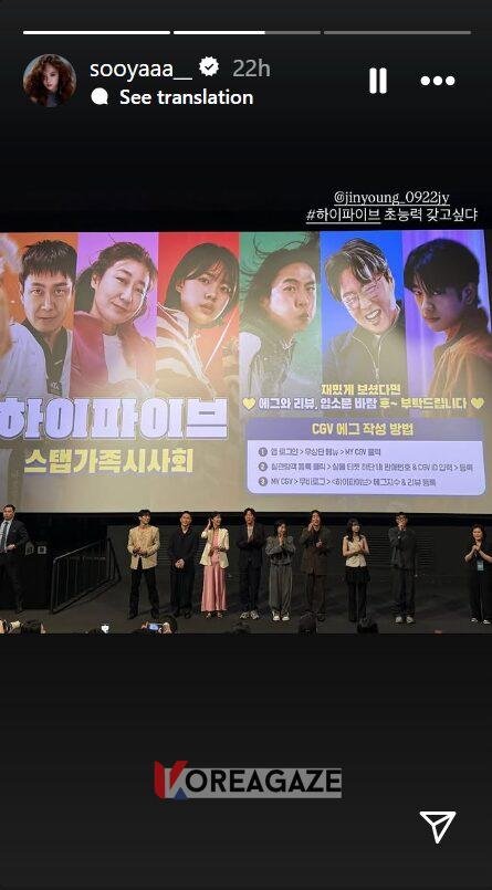 در 26 می، جیسو عکس‌هایی را به اشتراک گذاشت که نشان می‌داد قصد دارد به تماشای اولین نمایش فیلم جدید جینیونگ به نام Hi.5 برود.