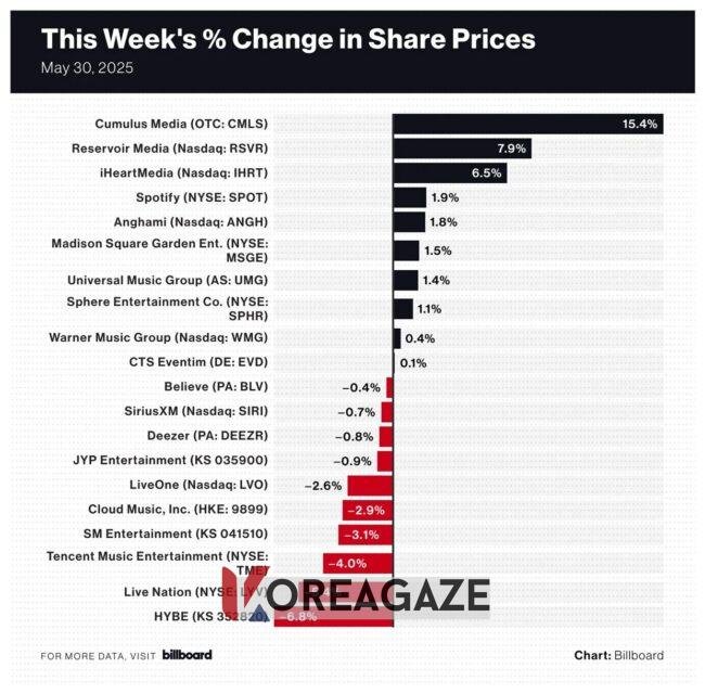 در هفته منتهی به ۳۰ مِی، سهام هایب ۶.۸ درصد سقوط کرد و با قیمت ۲۶۶,۰۰۰ وون (حدود ۱۹۲ دلار آمریکا) بسته شد. به گزارش بیلبورد (Billboard)، این سقوط ناگهانی، شدیدترین کاهش را در بین سهامهای اصلی مرتبط با موسیقی در یک دوره نسبتاً آرام بازار نشان میدهد.