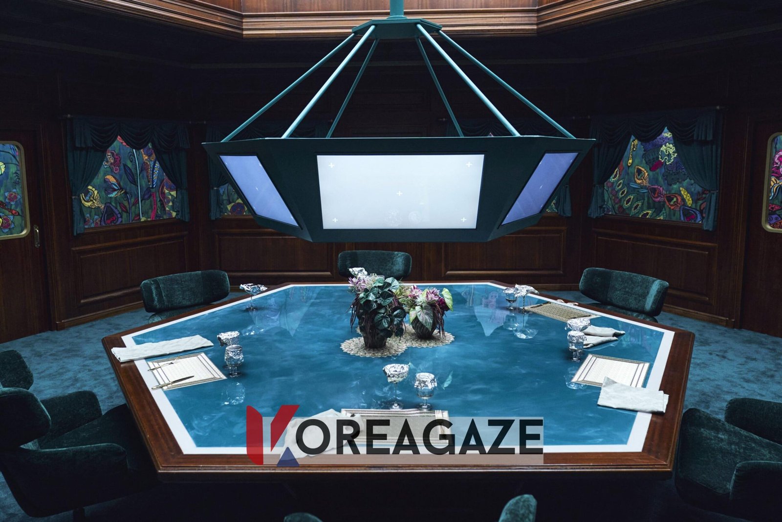 منطقه غذاخوری VIP هم جدید است. چای کیونگ سان گفت: “میز به شکل یک شش ضلعی است. این یک شکل جامد است و شبیه یک پیشگویی است، که من میخواستم در طراحی نشان دهم.”