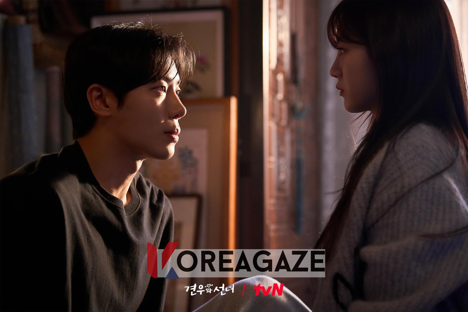 تصویر دیگری لحظهای بازیگوشانه اما دراماتیک را به تصویر میکشد، زمانی که گیون وو با کوبیدن ناگهانی پارک سونگ آ به دیوار غافلگیر میشود. واکنش متعجب او که دهانش را از روی شوک میپوشاند، با نگاه مطمئن سونگ آ در تضاد است و به تنش عاشقانه میافزاید. بینندگان کنجکاو هستند تا دریابند که آیا سونگ آ، که خود را یک “طلسم انسانی” مینامد و مصمم است از عشق اول خود محافظت کند، و گیون وو، که زمانی برای جلوگیری از بدبختی برای دیگران از آنها دوری میکرد، میتوانند با سرنوشت مبارزه کنند و عشق خود را حفظ کنند یا خیر.