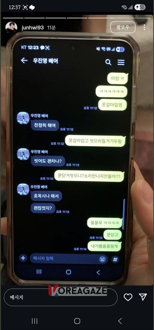 بعد از جنجال عمومی، محتوای بیشتری از طریق شبکههای اجتماعی درز کرد، از جمله اسکرینشاتهایی از مکالمات خصوصی بین پارک و وو. به نظر میاد که این دو نفر با هم بودن که پارک مجبور میشه به تماس تلفنی نامزدش جواب بده، و همین باعث میشه وو تعجب کنه که با اون صدا میتونه دوش بگیره یا نه.
