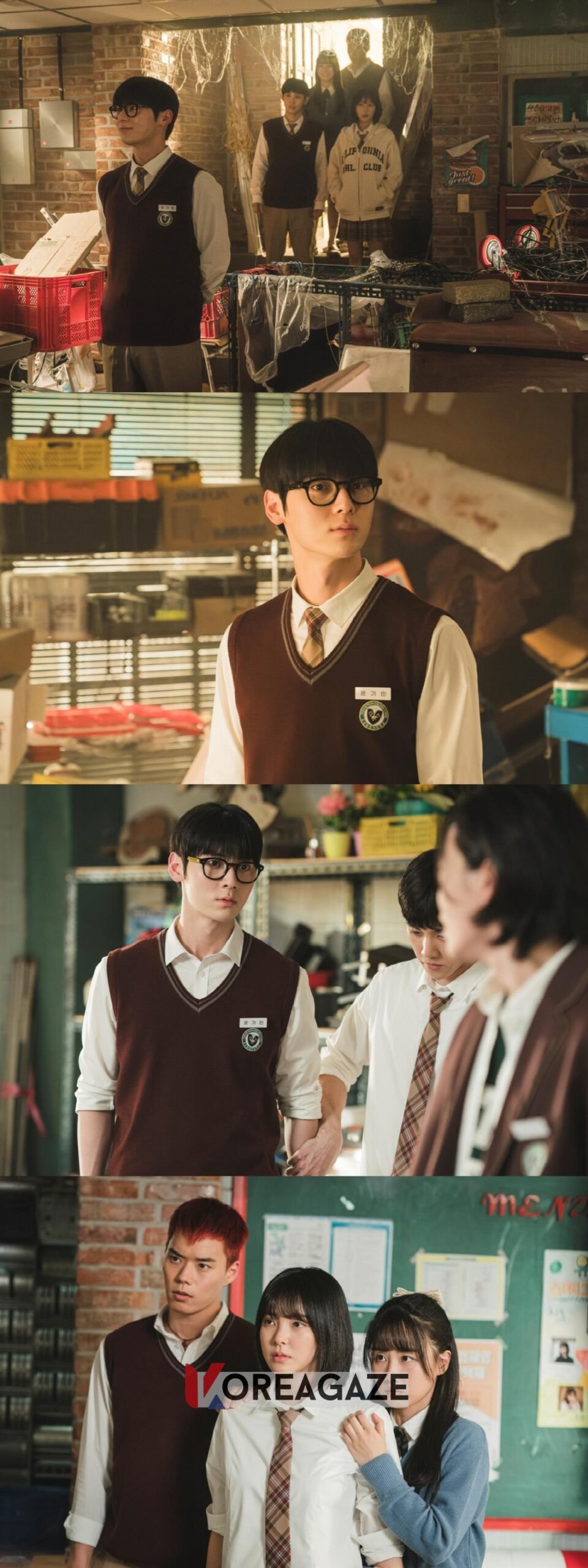 تصاویر تازه منتشر شده، تضاد چشمگیری را در حال و هوای اعضا نشان میدهد. اعضایی که اکنون به طور رسمی بخشی از باشگاه دبیرستان فنی یوسونگ هستند و اتاق گروهی خود را دارند. در حالی که گروه مطالعه رویای داشتن اتاق گروهی خود را در سر میپروراندهاند، اما این اتاق با انتظارات آنها فاصله زیادی دارد – اتاق پر از تار عنکبوت و گرد و غبار است. با وجود این وضعیت آشفته، یون گا مین با هیجان به اطراف اتاق نگاه میکند.