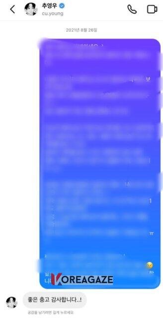 «یونگ وو هنوز کسی است که خوب به حرف دیگران گوش میدهد… در آن زمان، او هم مشکلی داشت که یکی از آن استریمرهای سکسی را دنبال میکرد. به نظر میرسد به هر حال مردم تغییر نمیکنند. او و یک استریمر جنجالیتر همدیگر را دنبال میکردند. خندهدار است که او بعد از اینکه من این پیام را فرستادم، حدود ۳۰ نفر را آنفالو کرد.»