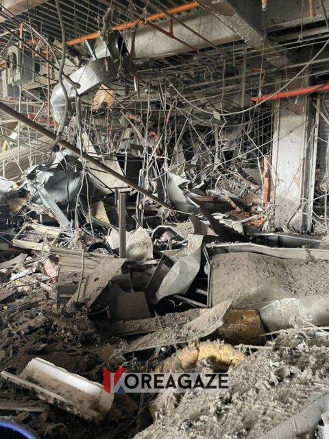 چندین شهروند این انفجار را با دوربین ضبط کردند و ویدیوها نشان میدهد که شیشه، پانلها و آوار با صدای بلند از ساختمان میانمرتبه به بیرون پرتاب میشوند. یکی از کاربران اینترنتی که در داخل مرکز خرید، درست یک طبقه پایینتر از محل وقوع انفجار بوده، ویدیوهایی از تخلیه فوری افراد از ساختمان پر از دود با دیوارهای آسیبدیده و لولههای آب شکسته منتشر کرده است.