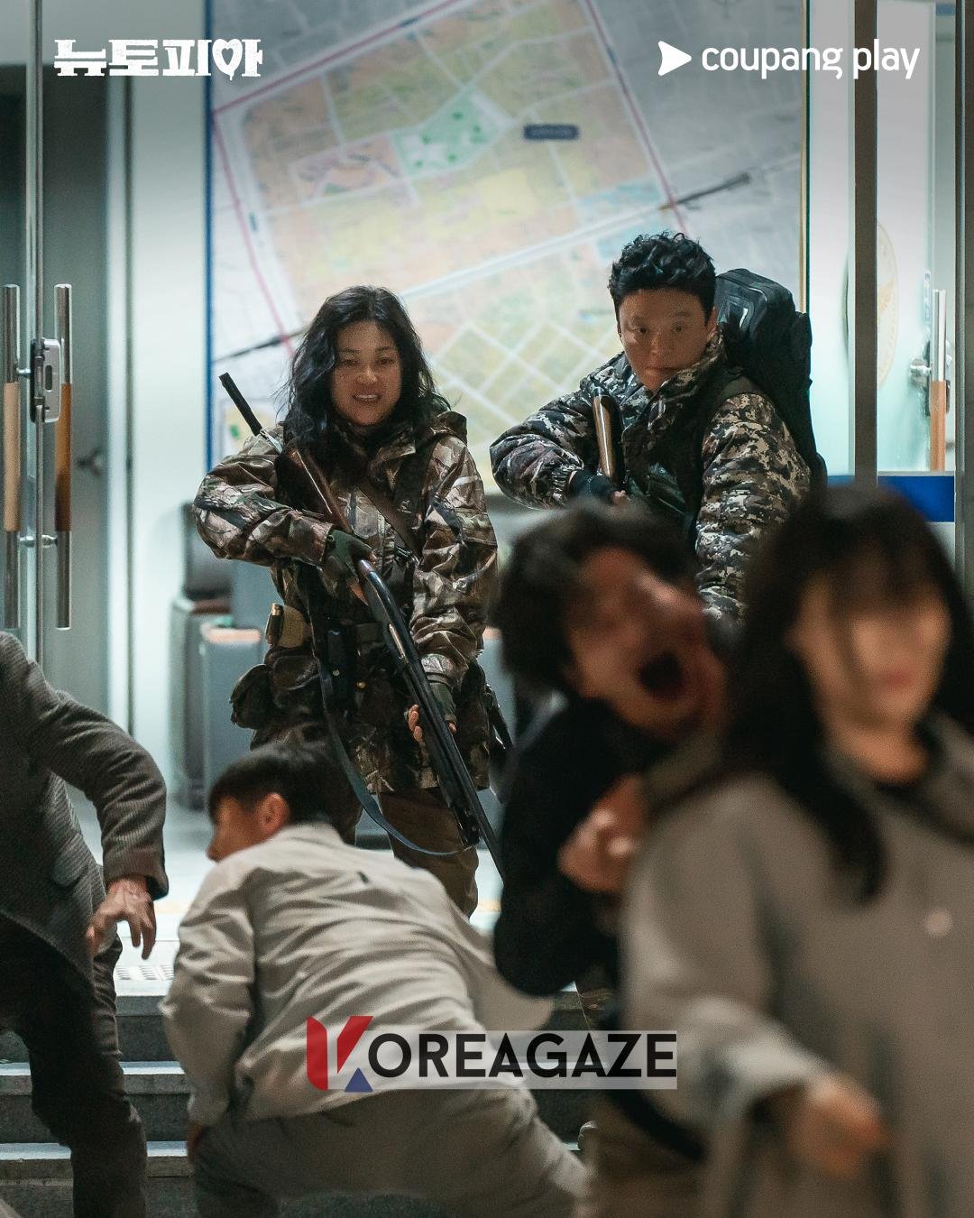 سریال “نیوتوپیا” (Newtopia) داستان جهیون (Jae Yoon) با بازی پارک جونگ مین (Park Jung Min) سربازی وظیفه، و دوست دخترش یانگجو (Young Joo) با بازی جیسو (Jisoo) از گروه بلکپینک (BLACKPINK) را روایت میکند که در سئول پر از زامبی برای یافتن یکدیگر مسابقه میدهند.